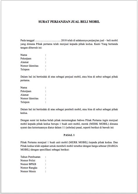 Contoh Surat Perjanjian Jual Beli Mobil Bekas Secara Tunai Nusagates from masmufid.com Check spelling or type a new query. Maybe you would like to learn more about one of these? We did not find results for: